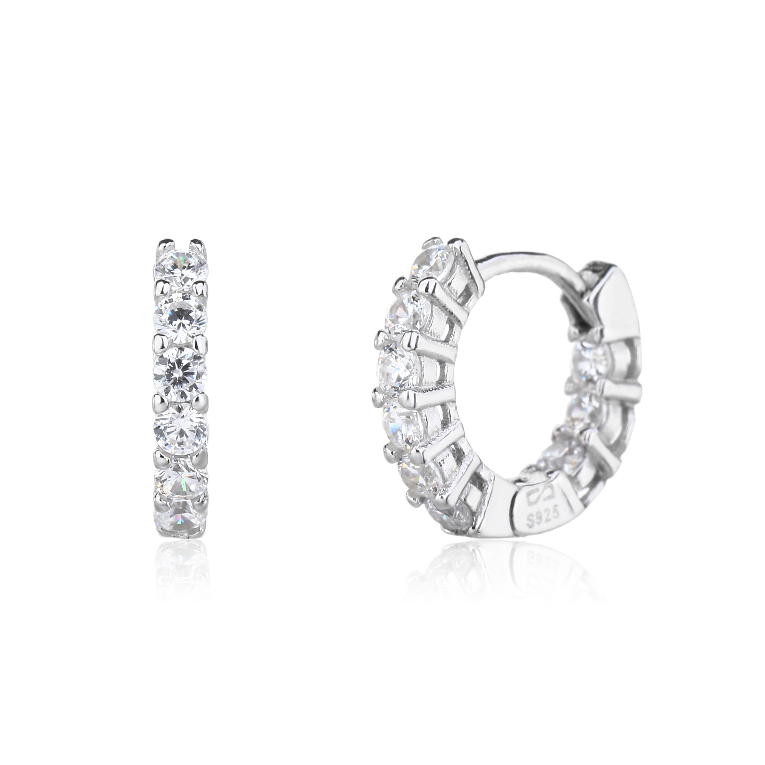עגילי חישוק עשויים כסף אמיתי 925 משובצים זרקונים העגילים מגיעים כזוג