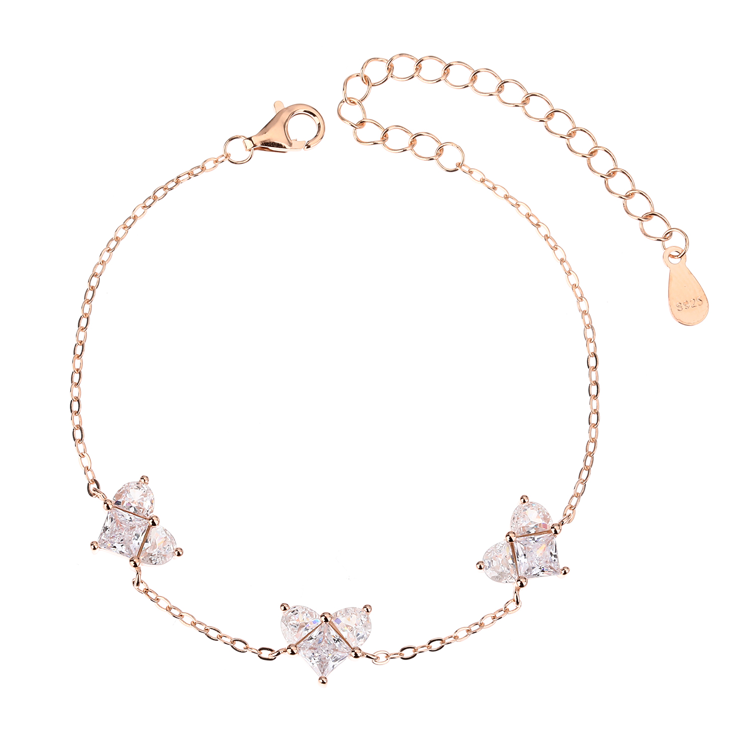 עשוי כסף אמיתי 925 בציפוי זהב אדום (רוז גולד) משובץ אבני זרקון אורך הצמיד: 15+5 ס”מ