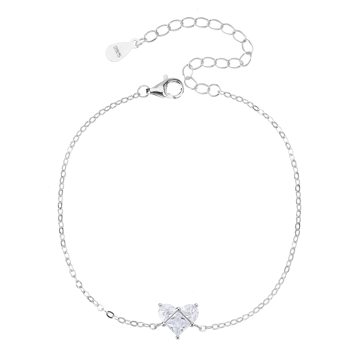 עשוי כסף אמיתי 925 משובץ אבני זרקון אורך הצמיד: 15+5 ס”מ