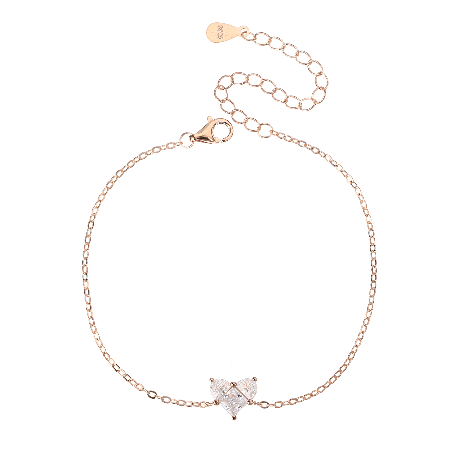 עשוי כסף אמיתי 925 בציפוי זהב אדום (רוז גולד) משובץ אבני זרקון אורך הצמיד: 15+5 ס”מ