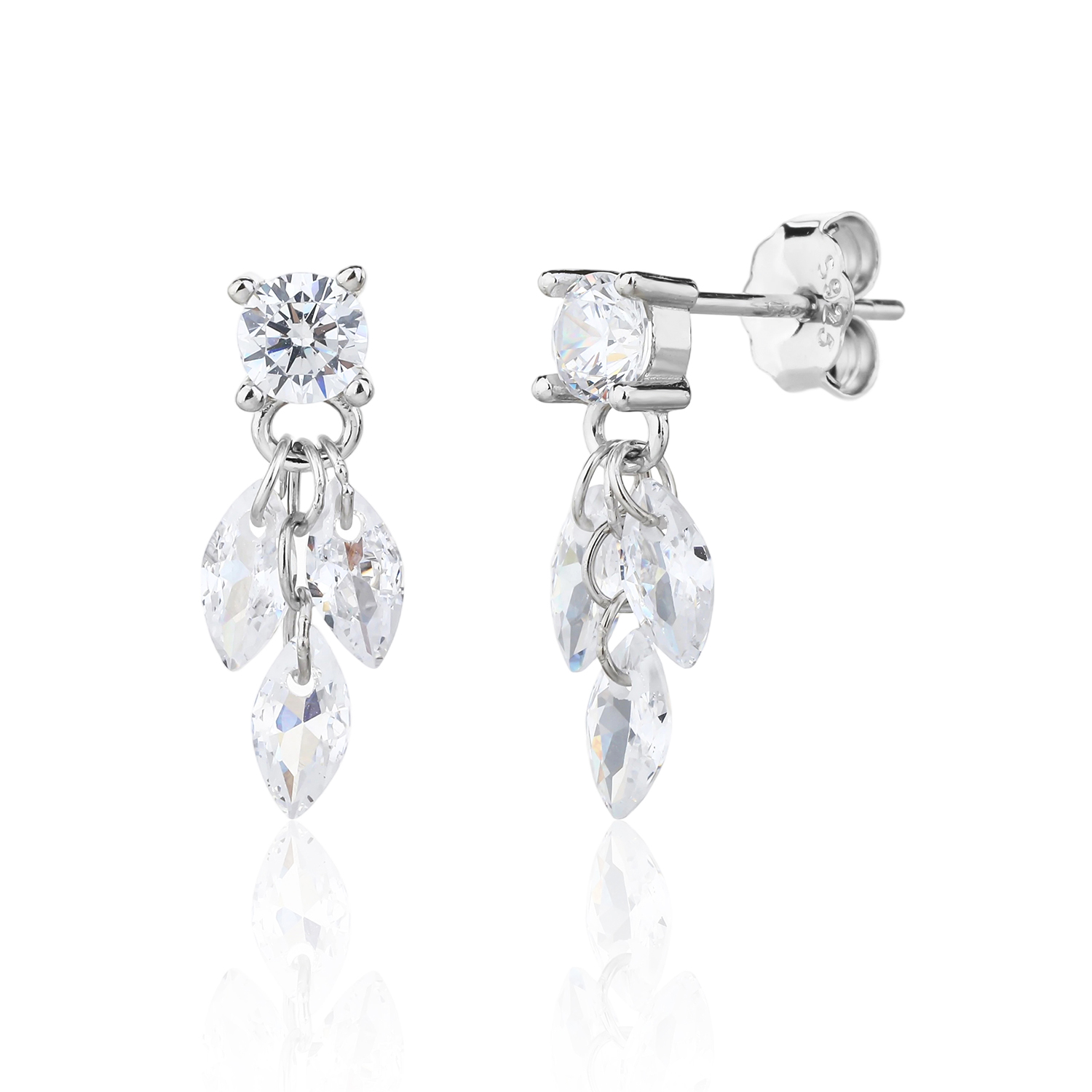 עשויים כסף אמיתי 925 משובצים אבני זרקון. העגילים מגיעים כזוג.